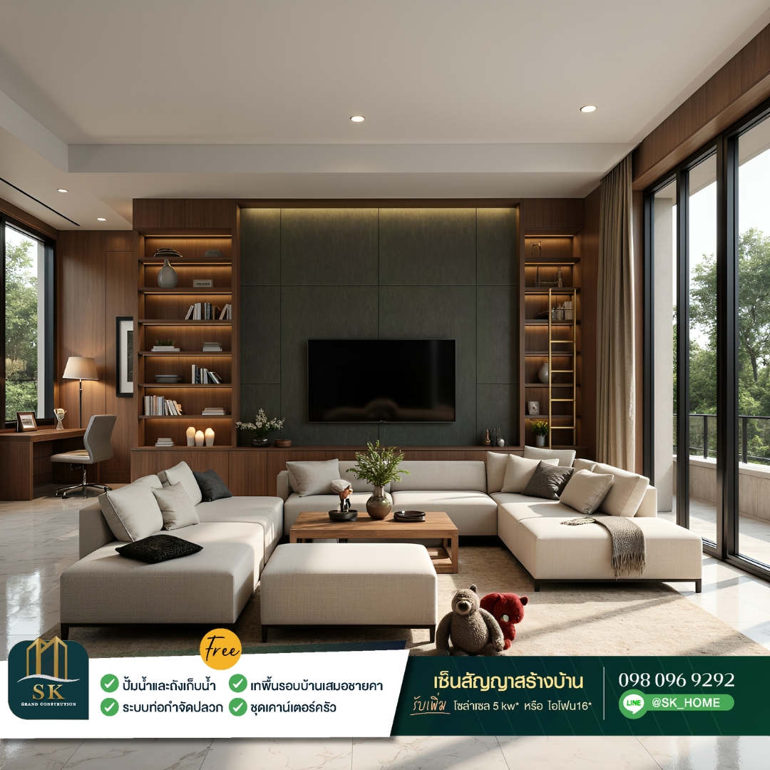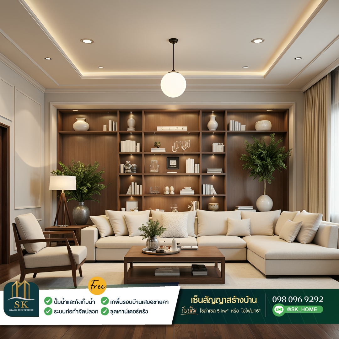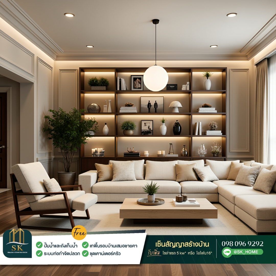 SK GRAND IDEA ออกแบบพื้นที่ห้องนั่งเล่นที่ลงตัวระหว่างความสวยงามและฟังก์ชัน ที่สวยและใช้งานได้จริง