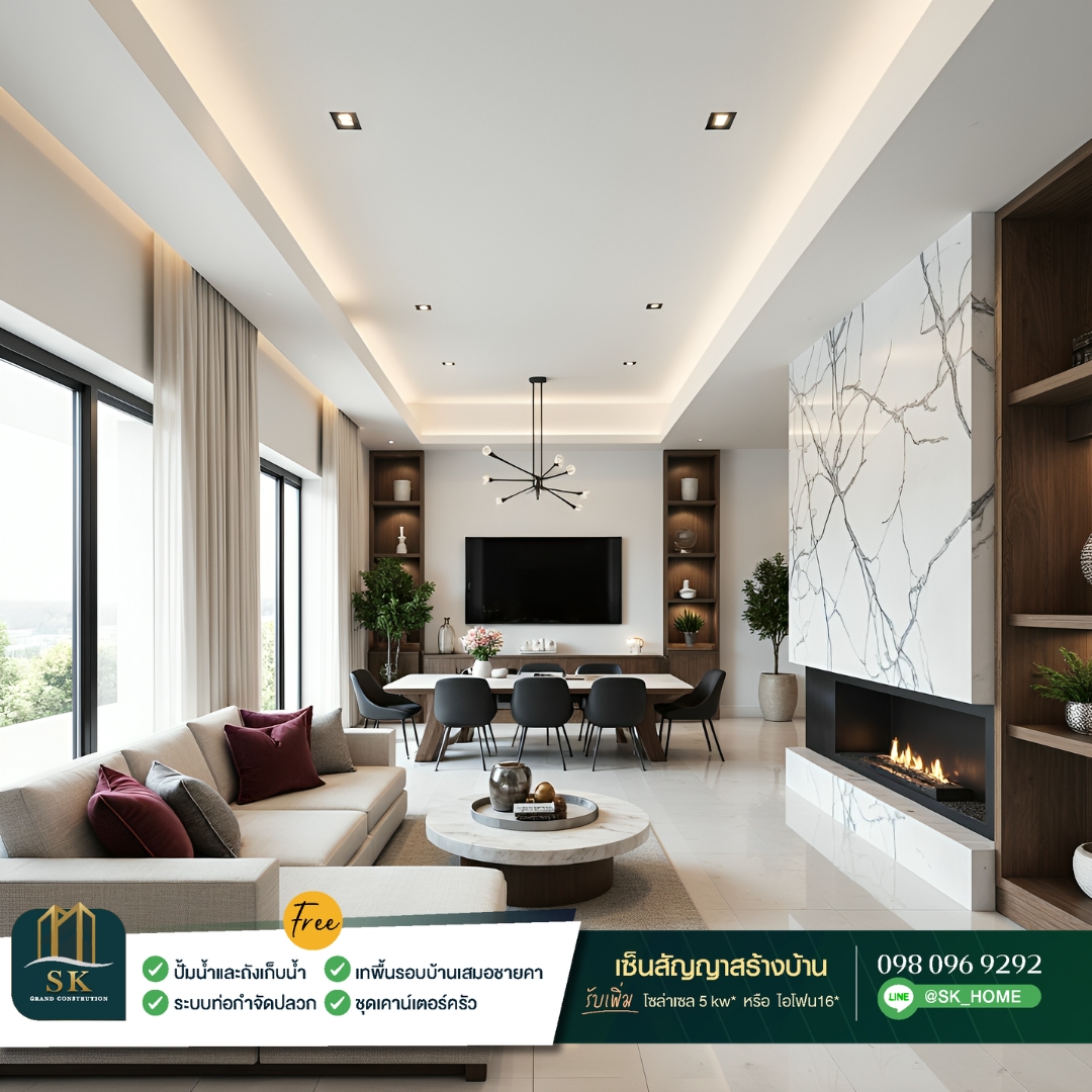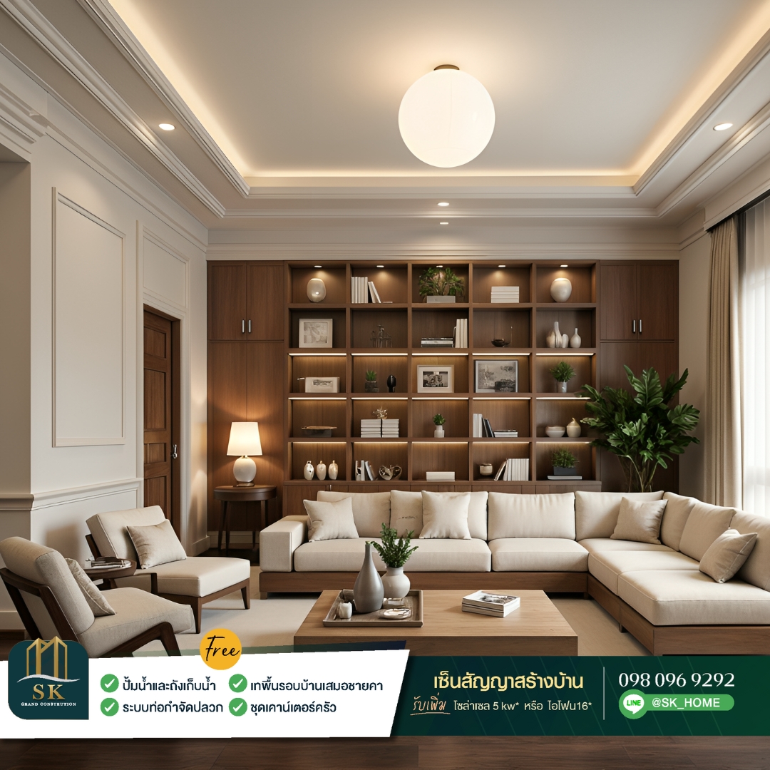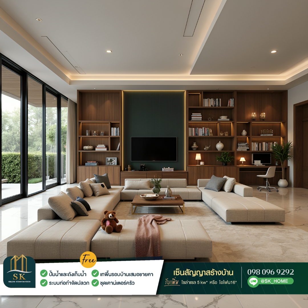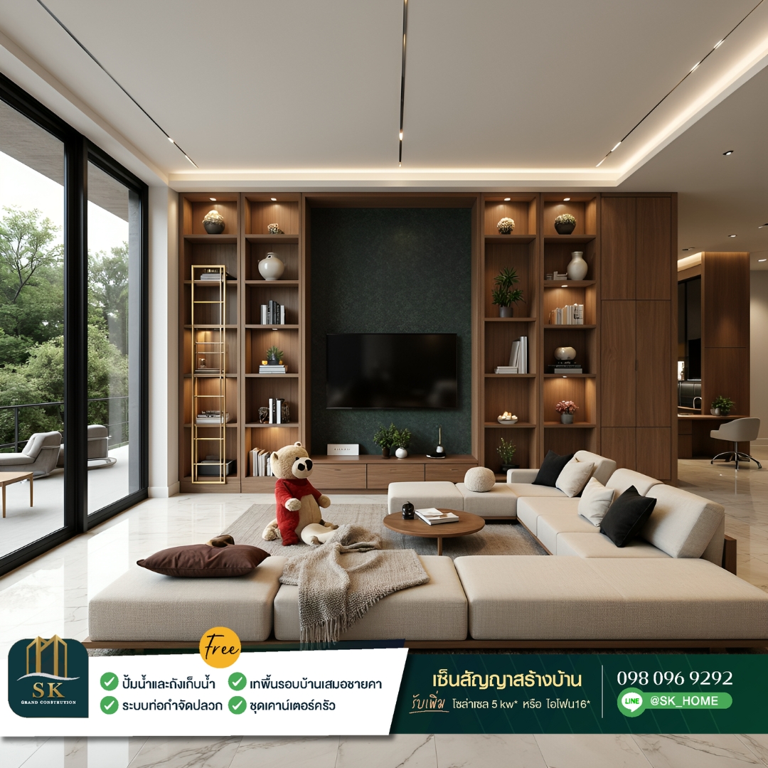 SK GRAND IDEA ออกแบบพื้นที่ห้องนั่งเล่นที่ลงตัวระหว่างความสวยงามและฟังก์ชัน ที่สวยและใช้งานได้จริง